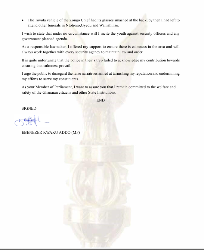 Mr. Addo noted that the Zongo Chief’s vehicle was later vandalized while transporting the officers, but by that time, he had already left for other engagements. He emphasized that at no point did he encourage violence or attempt to obstruct the work of the security personnel.