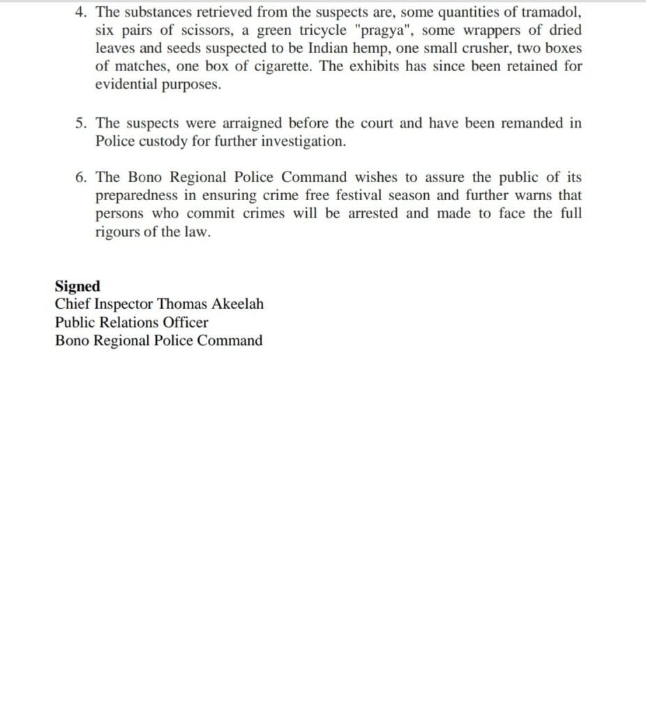 Presenting the update, Chief Inspector Thomas Akeelah, Public Relations Officer for the Bono Regional Police, stated, “This exercise is part of ongoing efforts to combat illegal drug peddlers and users, and rid our communities of these miscreants.”