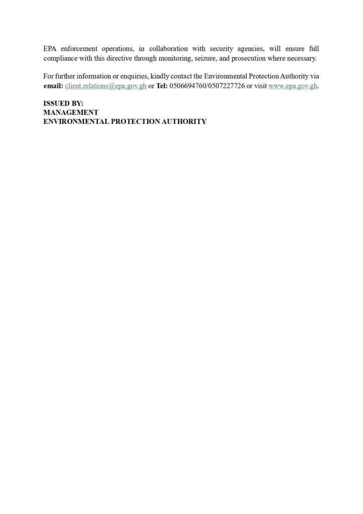 The Authority reaffirmed its commitment to safeguarding Ghana’s environment and urged the public to report any breaches of the directive through its official contact lines or website.