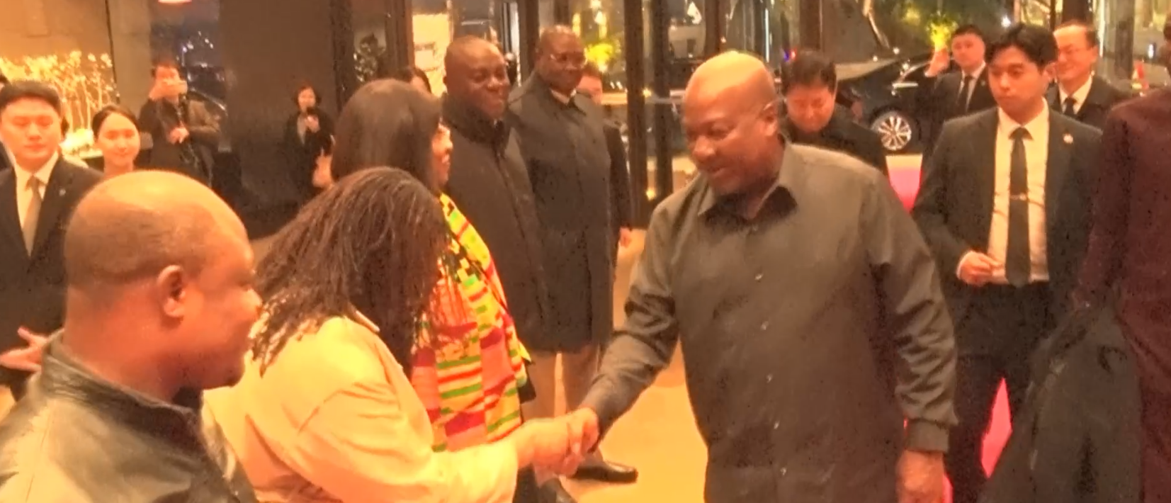 President John Dramani Mahama is accompanied by a delegation including Dr. Callistus Mahama, Secretary to the President; Joyce Bawah Mogtari, Advisor and Special Aide to the President; Samuel Okudzeto Ablakwa, Minister for Foreign Affairs; and Stan Xoese Dogbe, Deputy Chief of Staff, Operations.